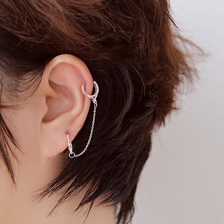 1 Creole Ohrring für zwei Ohrlöcher mit Kette Silber 925