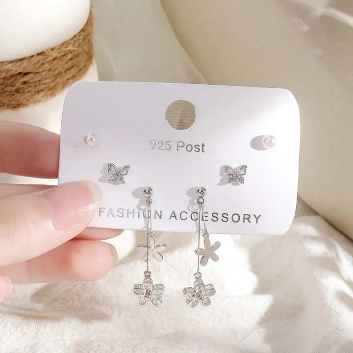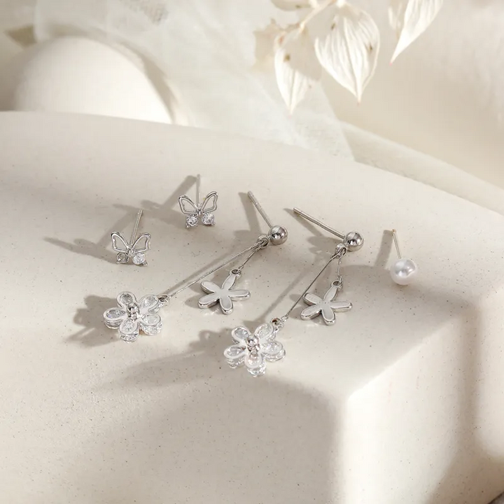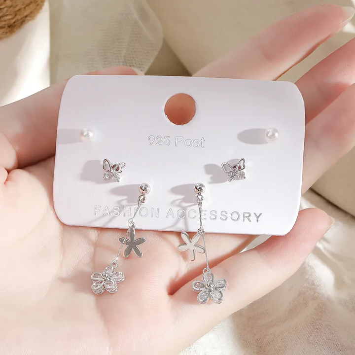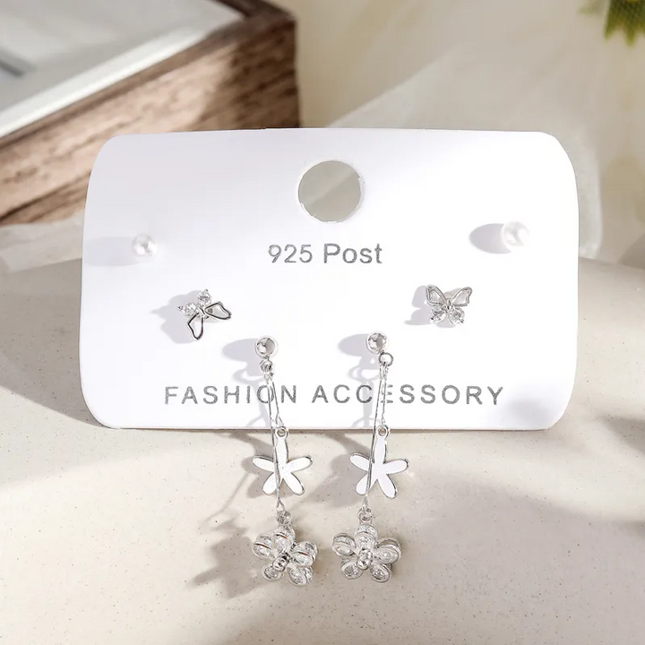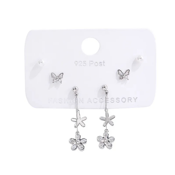2 Paar Ohrstecker Set Schmetterling-Blume