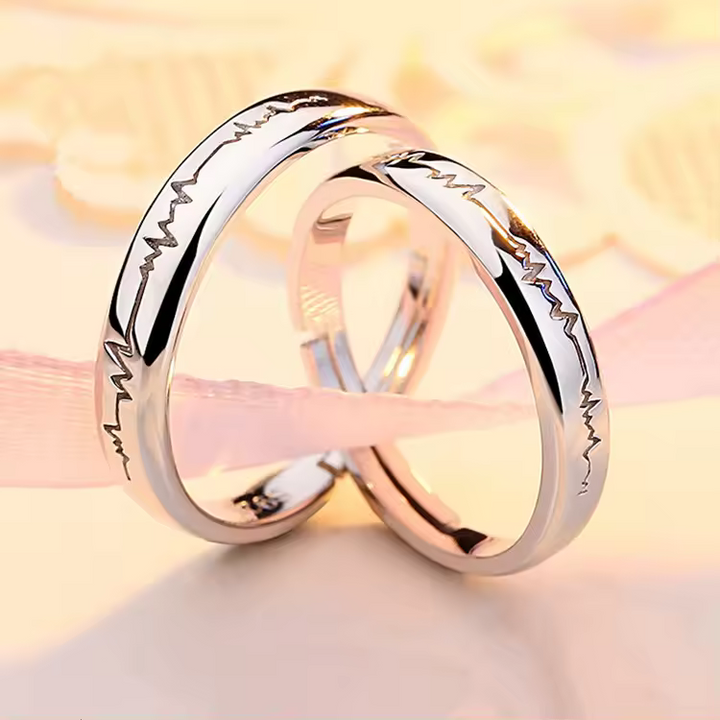 2 Partnerringe Herzschlag Silber 925 Ring Herz Trauringe Freundschaftsringe