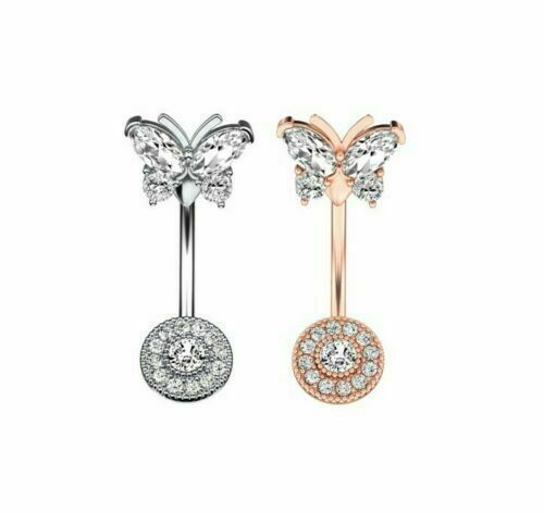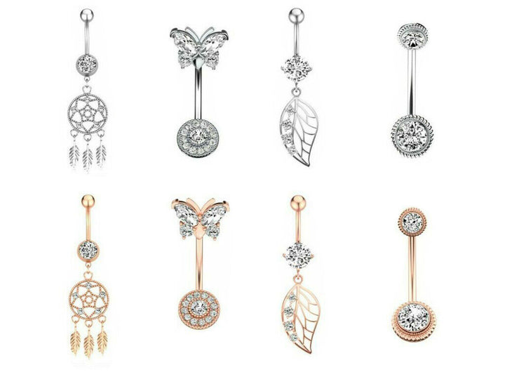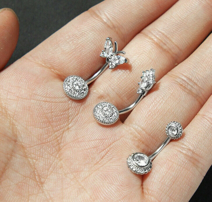 4 Pcs Set Edelstahl Bauchnabel Piercing Gebogener Stab Zirkon Kristall Kette