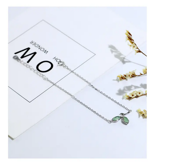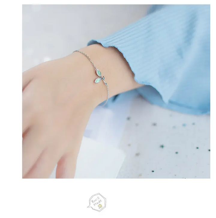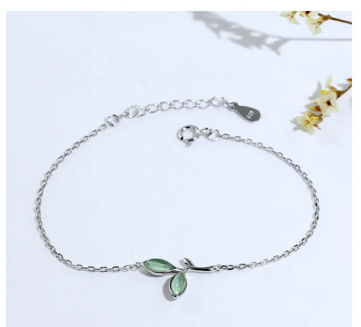 925 Silber Armband mit grünen Blättern – Filigraner Damen-Schmuck, Naturdesign