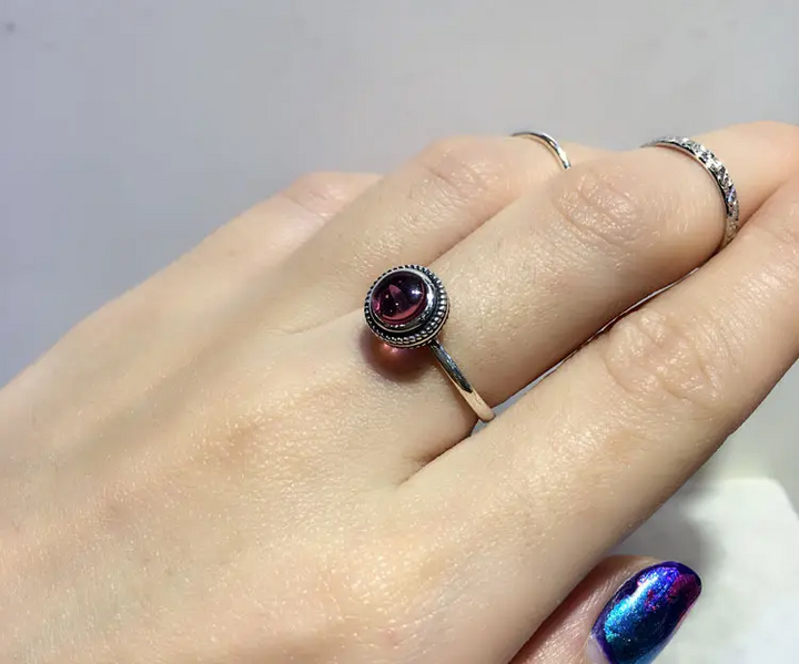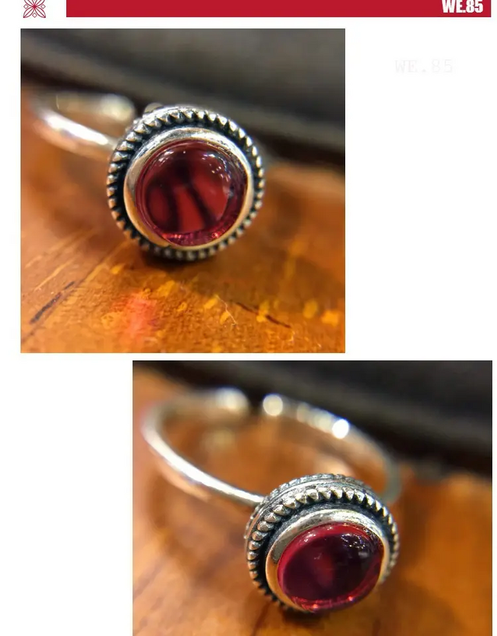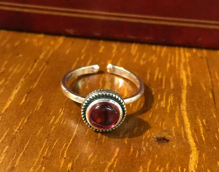 925 Silber Damenring mit rotem Vintage-Stein – Verstellbar & Elegant