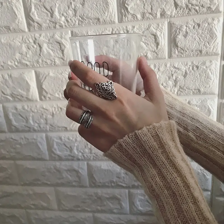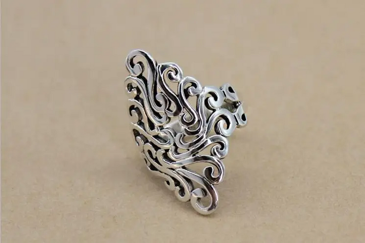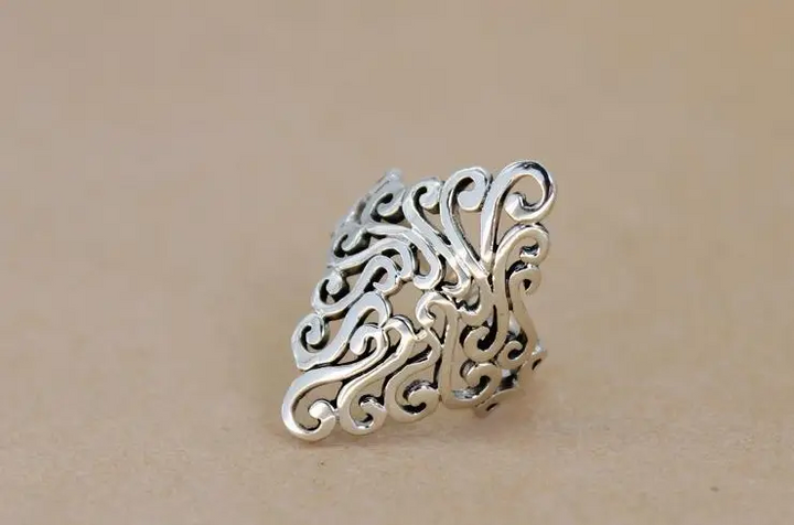 925 Silber Offener Damenring im Vintage-Stil – Ornament Muster, Verstellbar