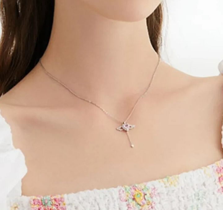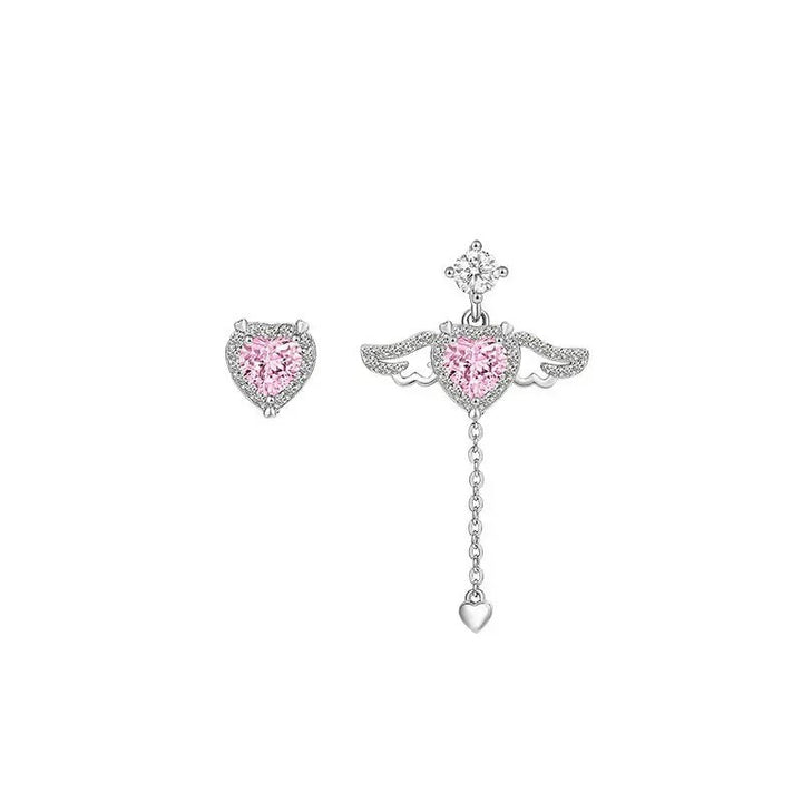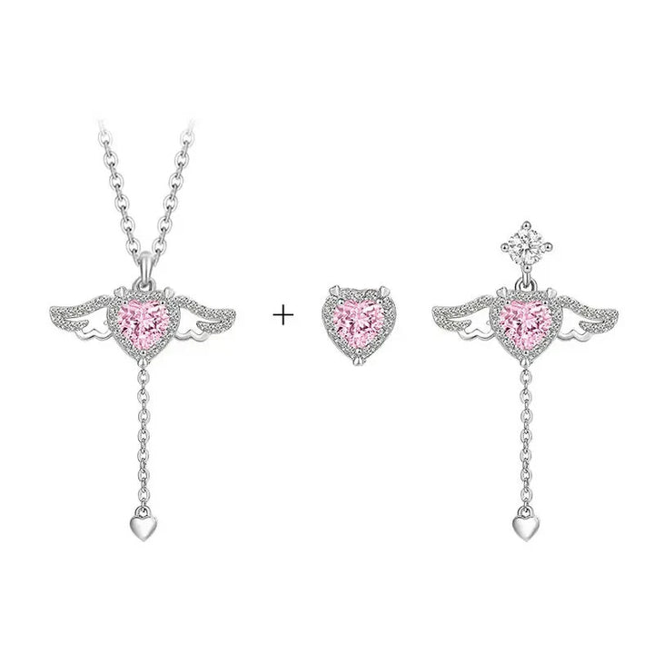 925 Silber Schmuckset – Angel Flügel-Design mit rosa Herz, Halskette & Ohrringe
