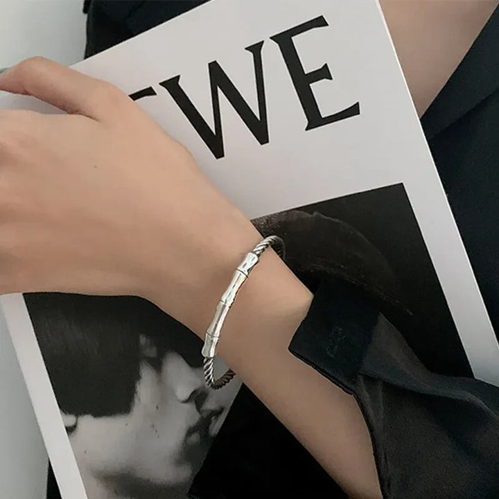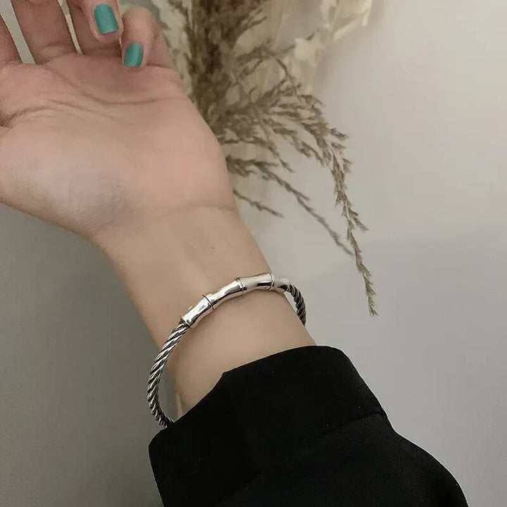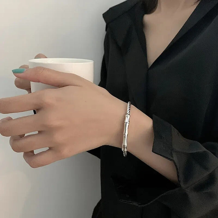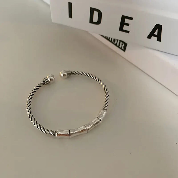 925 Sterling Silber Armreif – Geschwärzt Offenes Design mit Bambus-Detail
