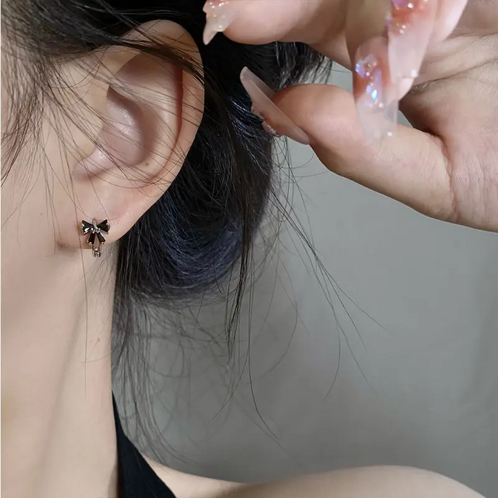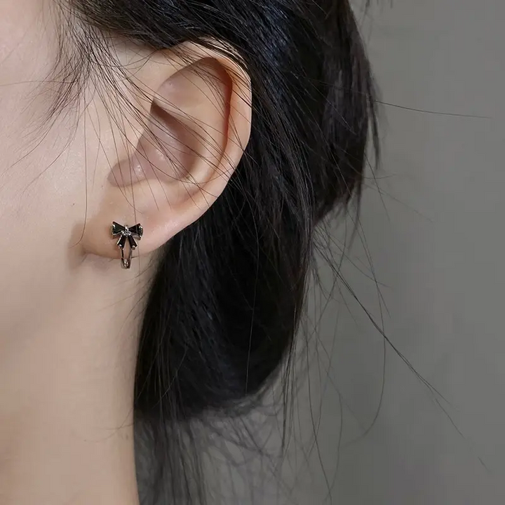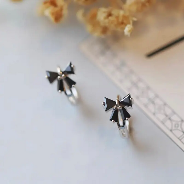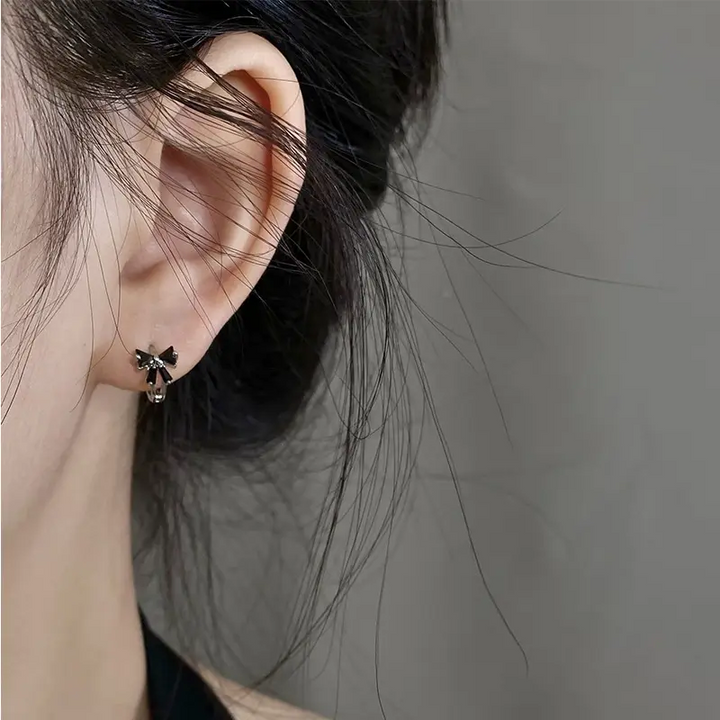 925 Sterling Silber Creolen Schwarzer Schleife – Verspielter & Eleganter Look