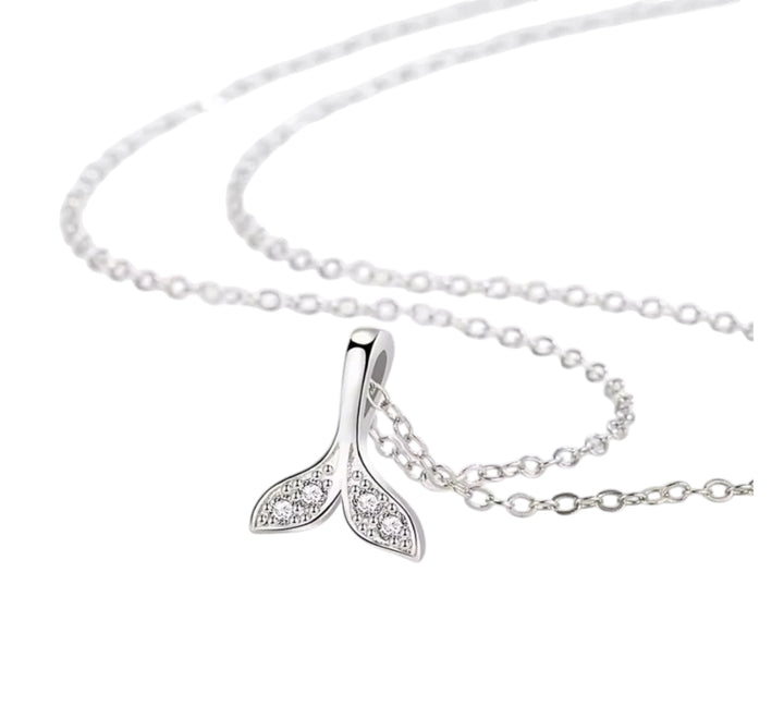 925 Sterling Silber Halskette | Meerjungfrau-Flossen Anhänger mit Zirkonia