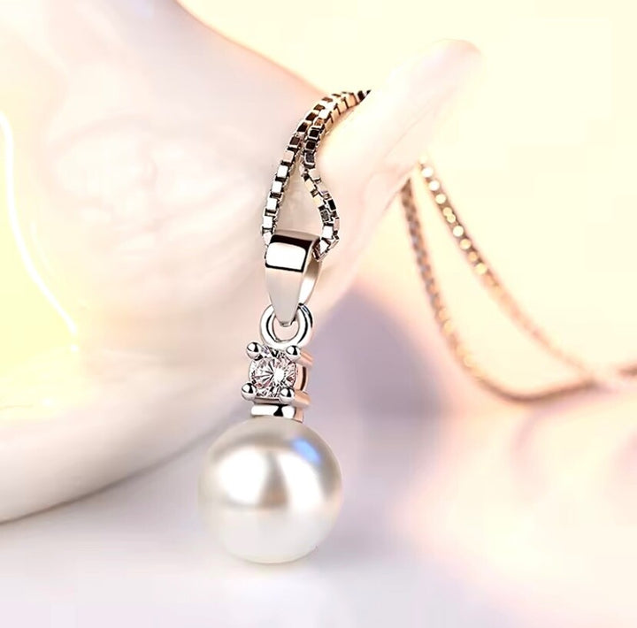 925 Sterling Silber Perlenkette | Eleganter Anhänger mit Zirkonia & Perle