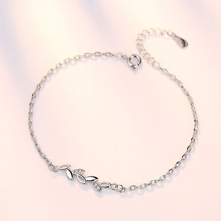 Armband, Armkette, Sterlingsilber, Blatt, Zirkonia, 16+4 cm NEU