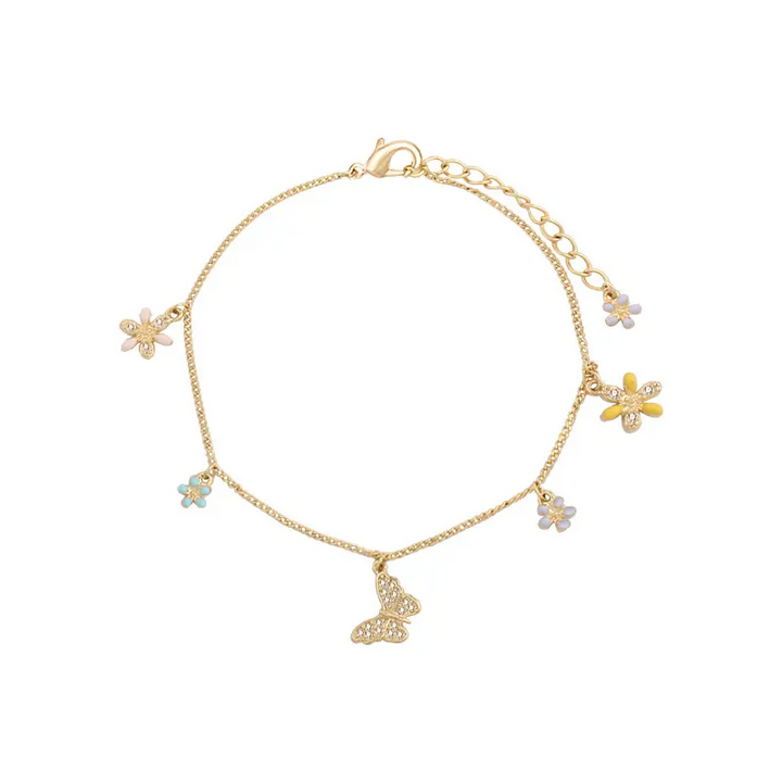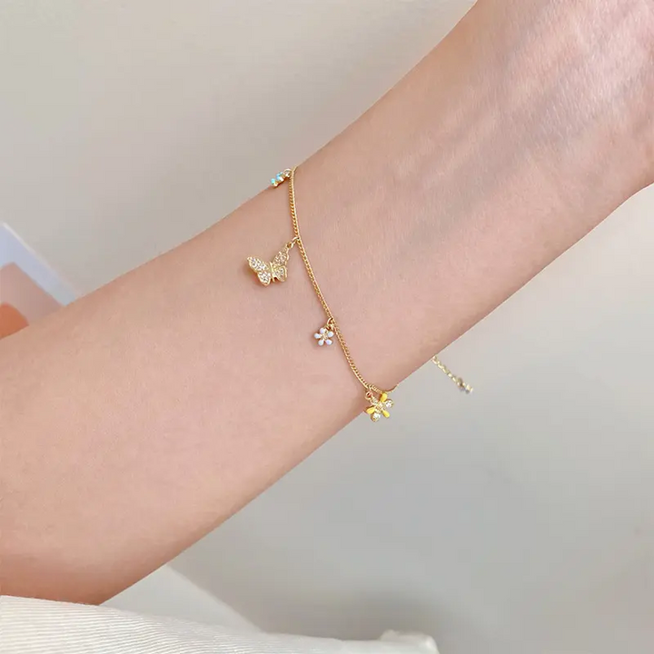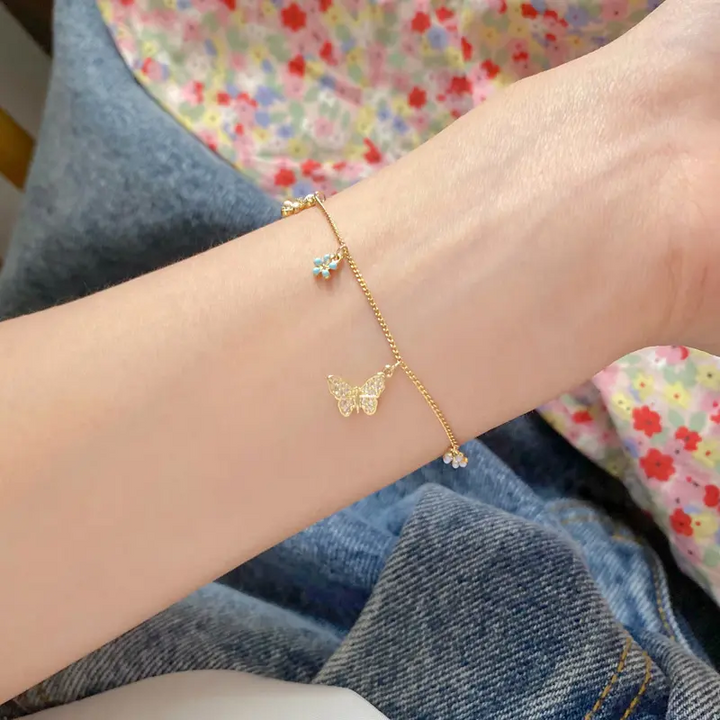 Armband Schmetterling-Blumen Sterlingsilber 925 Zirkonia Mädchen Armkette