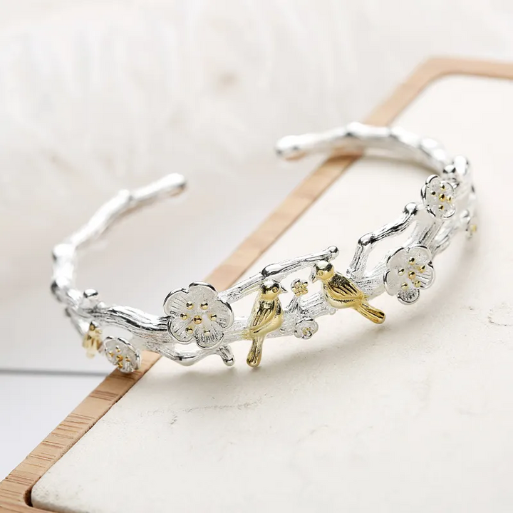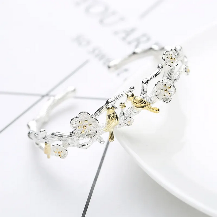 Armreif Vogels - Blumen Sterling Silber 925 Damen Armband - Armkette