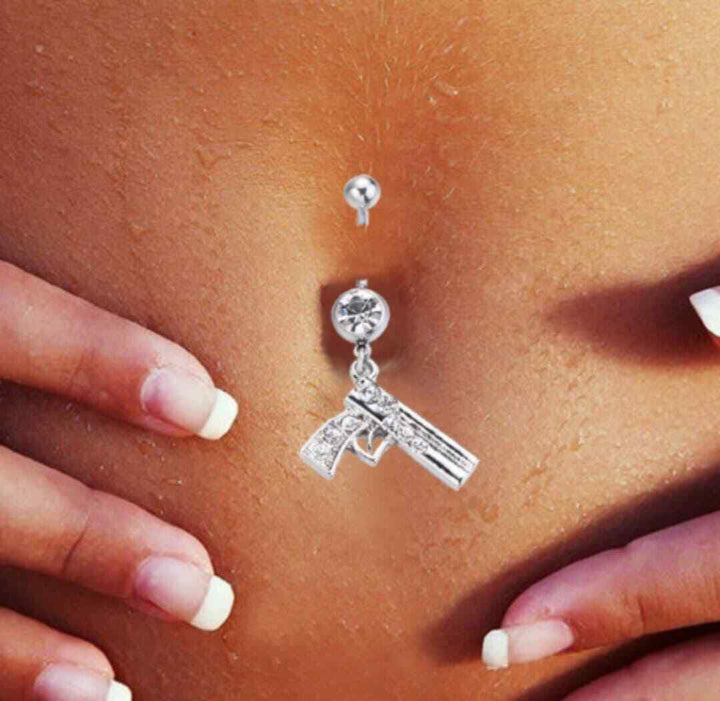 Banane mit Anhänger Pistole Bauchnabel Piercing Zirkon Gebogener Stab Nabel