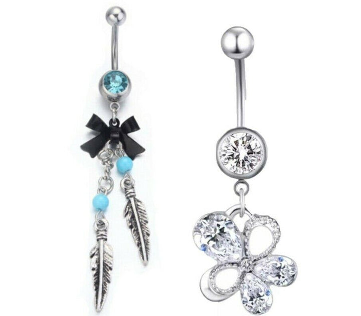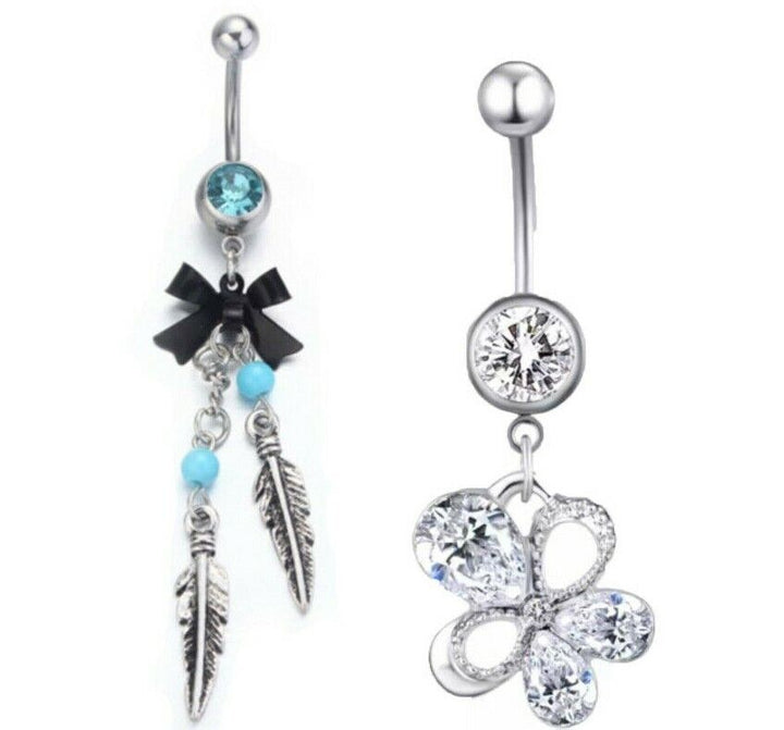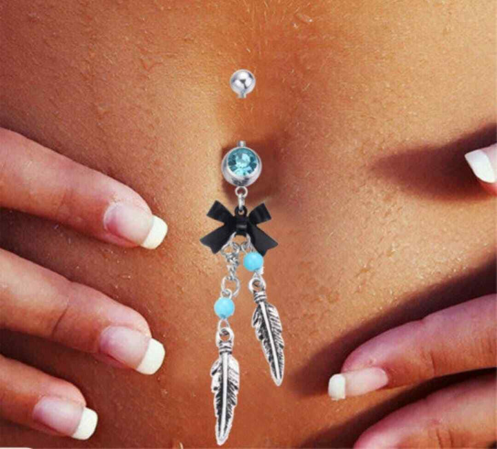 Bauchnabel-Piercing Banane Anhänger Feder Zirkon Kristall Gebogener Stab