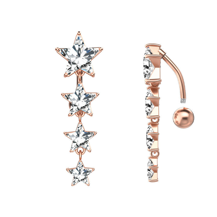 Bauchnabelpiercing Sterne Kristall Langkette Gebogener Stab Zirkon Nabel Kette