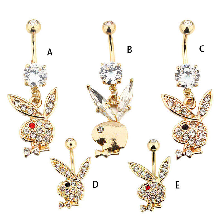 Bauchnabelpiercing Zirkonia Anhänger Kaninchen Strass Kristall goldfarbe