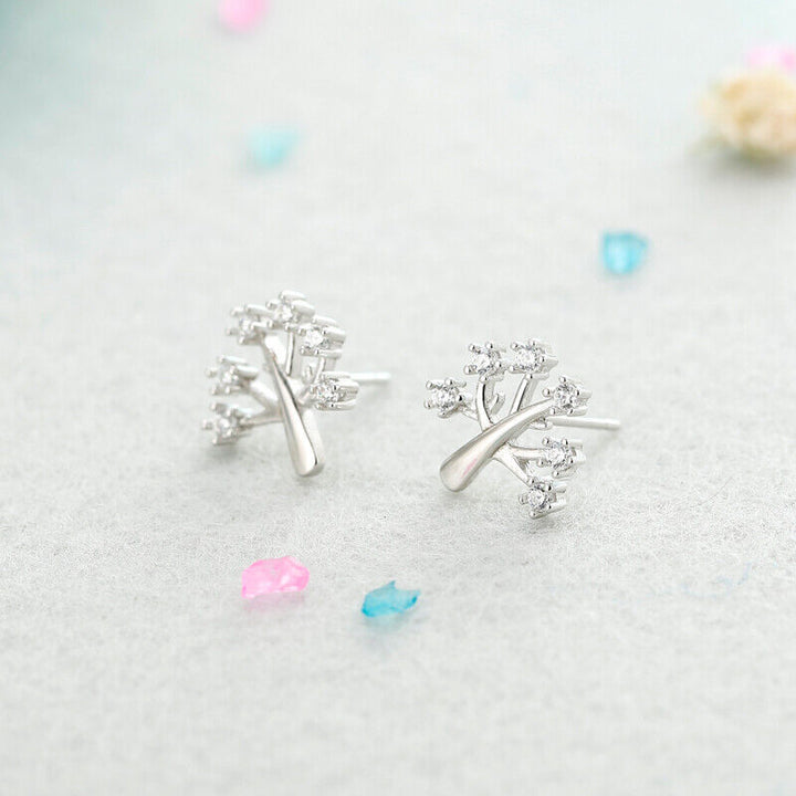 Ohrringe Ohrstecker Zirkonbaum & Blume Sterlingsilber 925