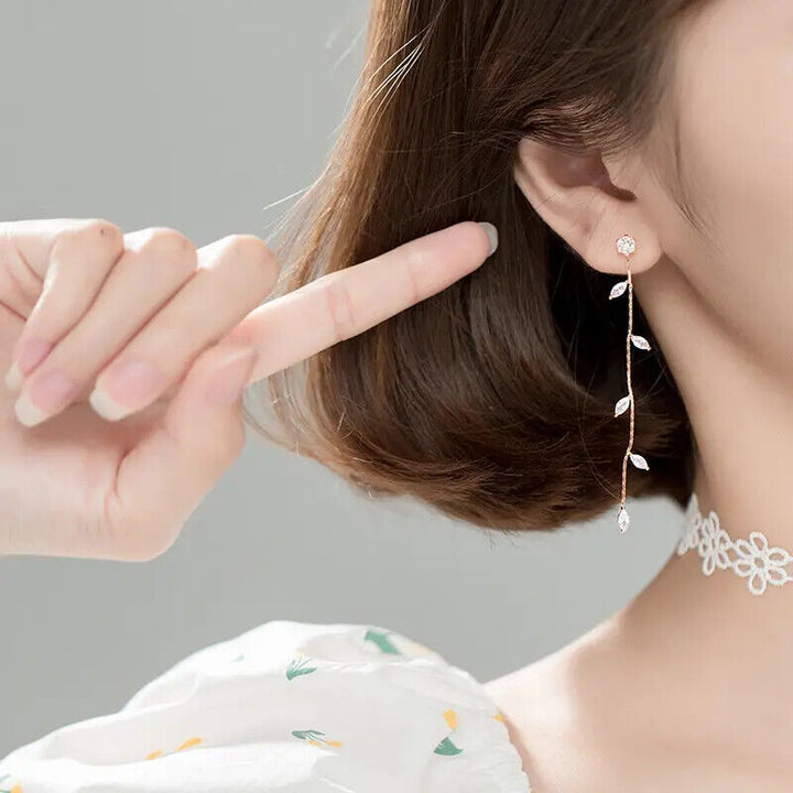 Blätt Damen Ohrringe Sterling Silber 925 Damenkette Ohrhänger