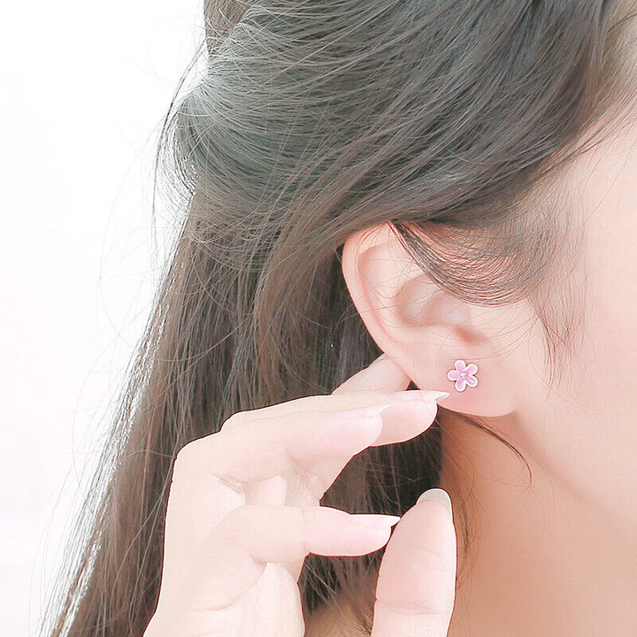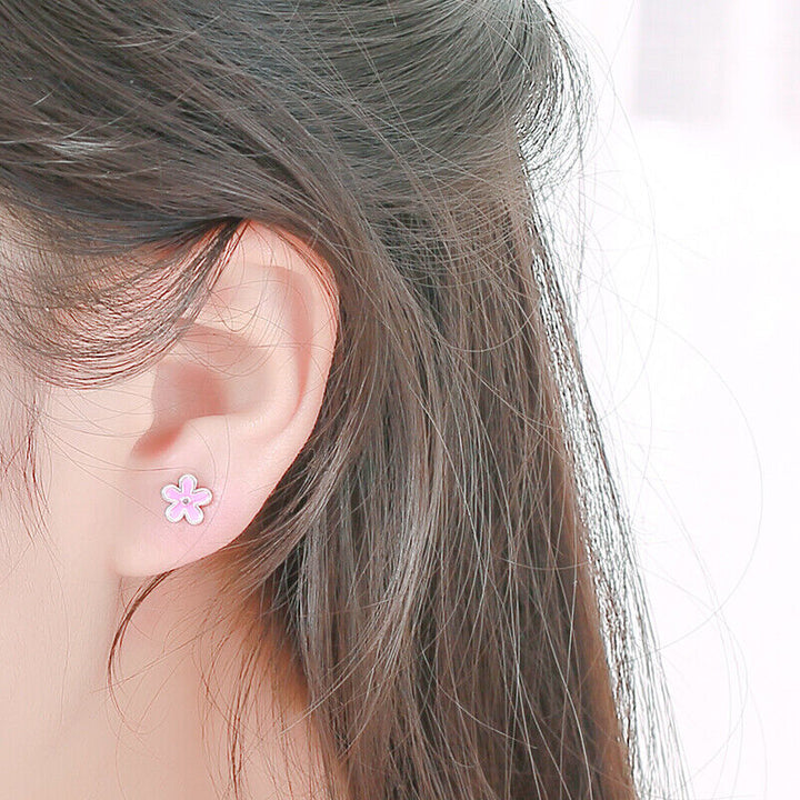 Ohrringe Ohrstecker Rosa Kirschblüte & Blume Sterlingsilber 925