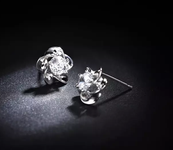 Ohrringe Ohrstecker Blüte & Blume Sterlingsilber 925 mit Zirkonia.