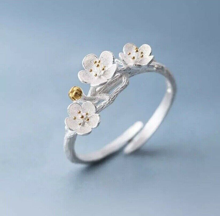 Blumen Ring Silber 925 Damen Mädchen Größenverstellbar 49-55