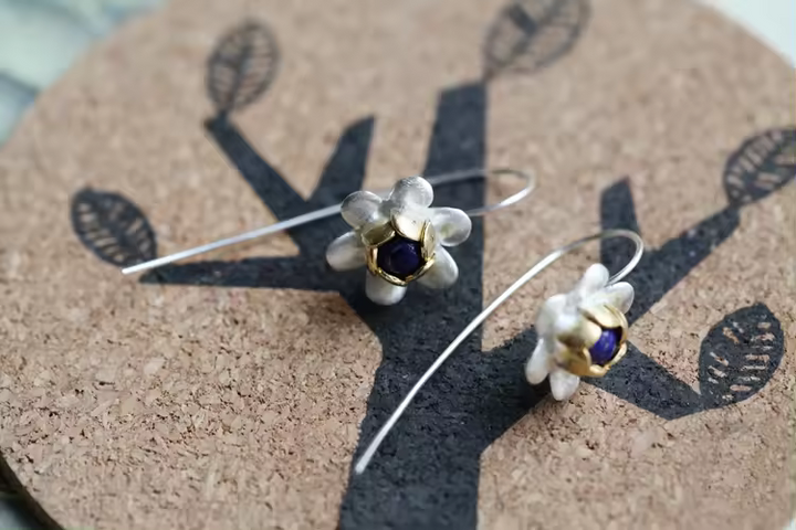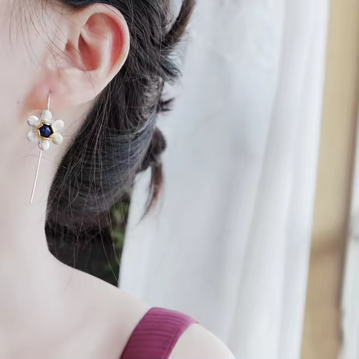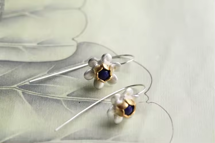 Blüte Blume Ohrhänger echt Sterling Silber 925 Ohrringe