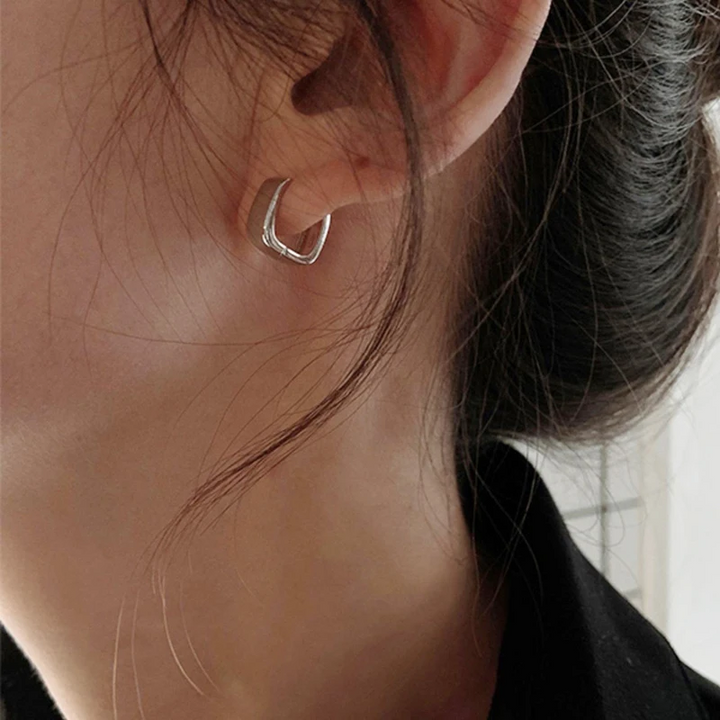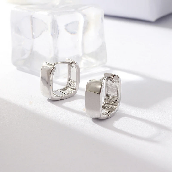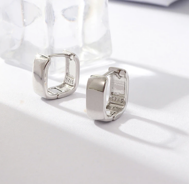 Breite Creolen Quadrat Sterling Silber 925 Damen Ohrringe Kreolen