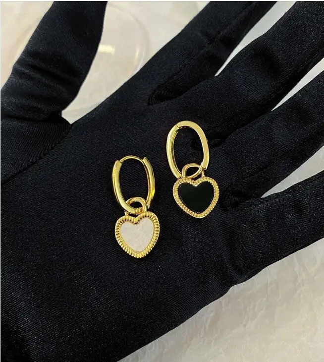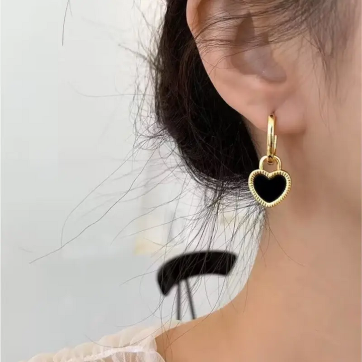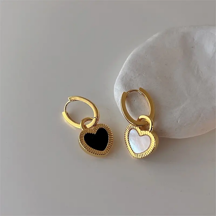 925 Silber vergoldete Creolen – Herzanhänger in Schwarz und Weiß