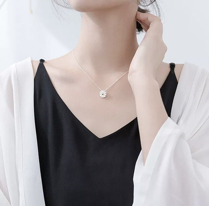 Collier Halskette Sonnenblume Sterling Silber 925 Opal Damen