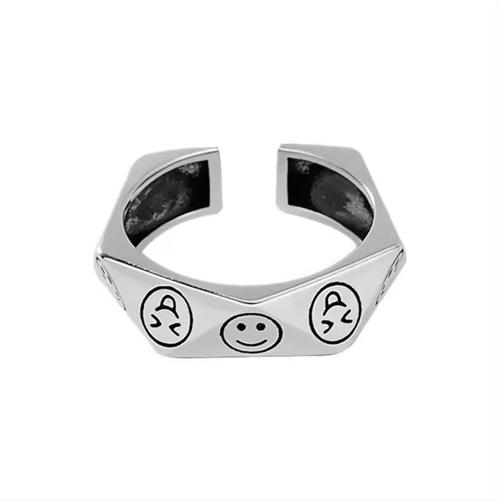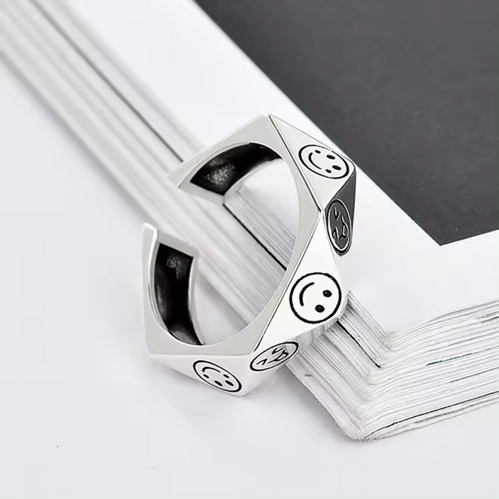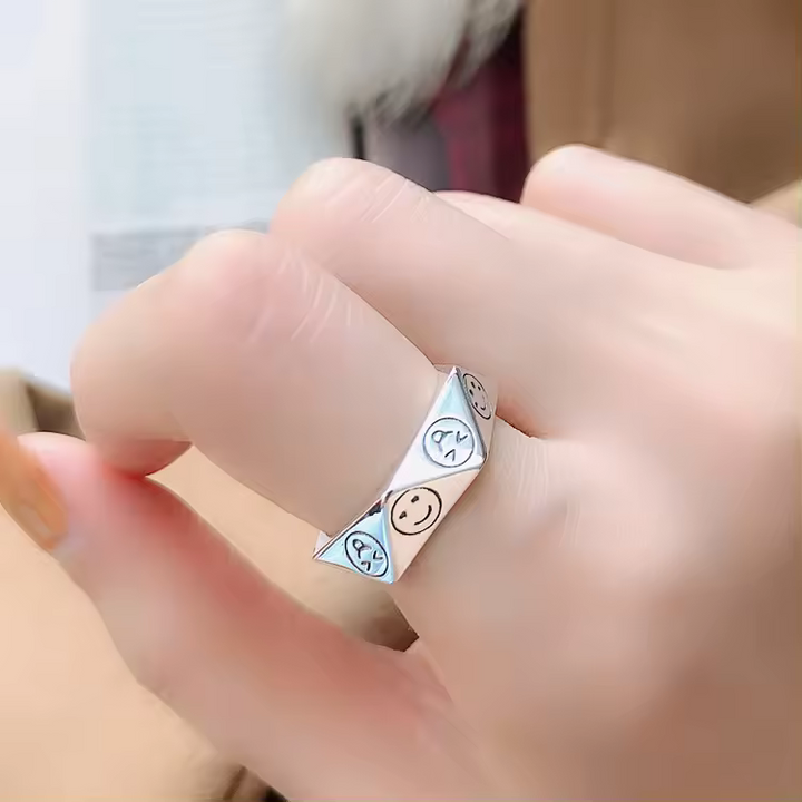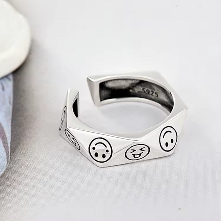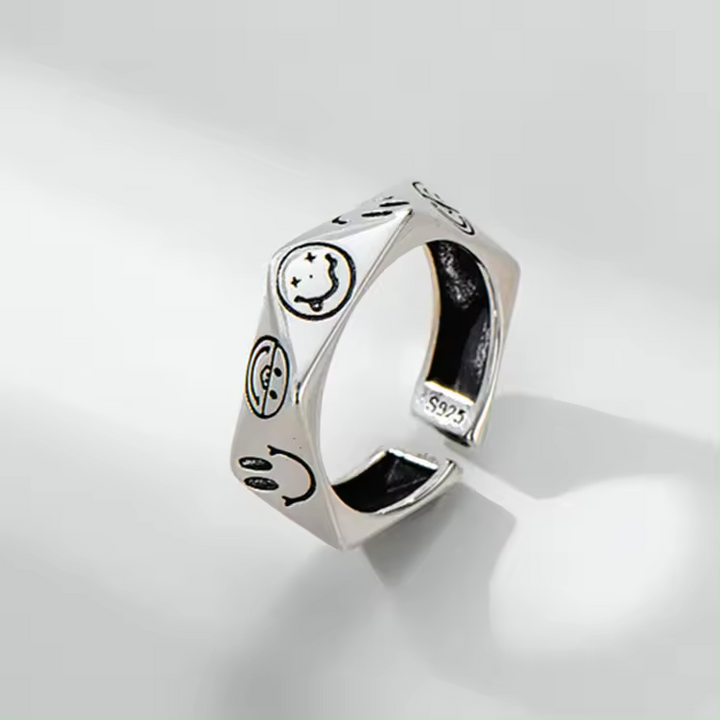 Cooler Ring mit Smile-Motiv 925er Sterling-Silber, größenverstellbar