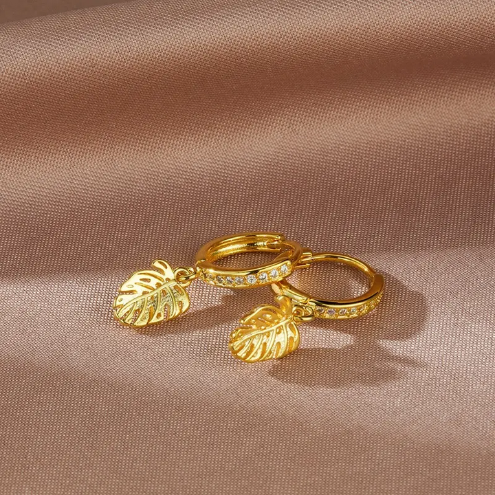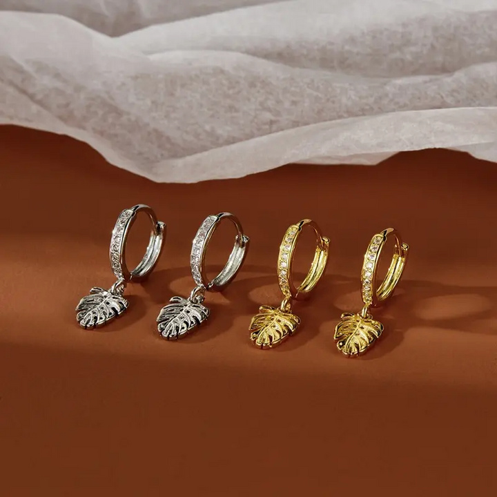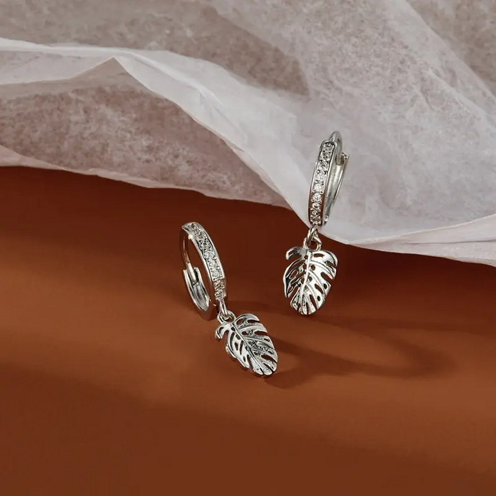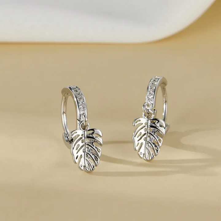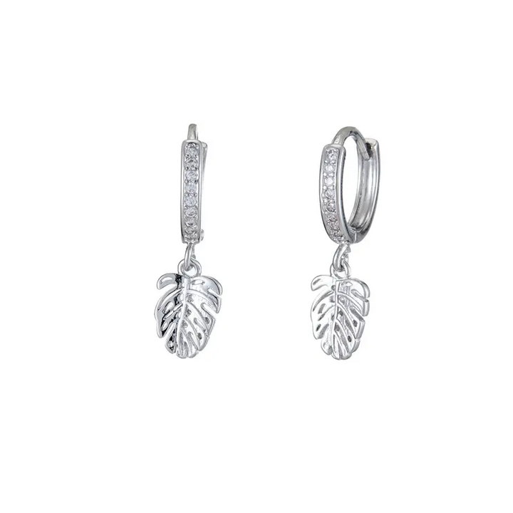 Creole mit Anhänge Blätter Silber 925 Ohrringe Damen Kreolen