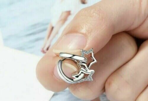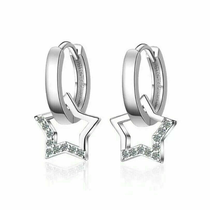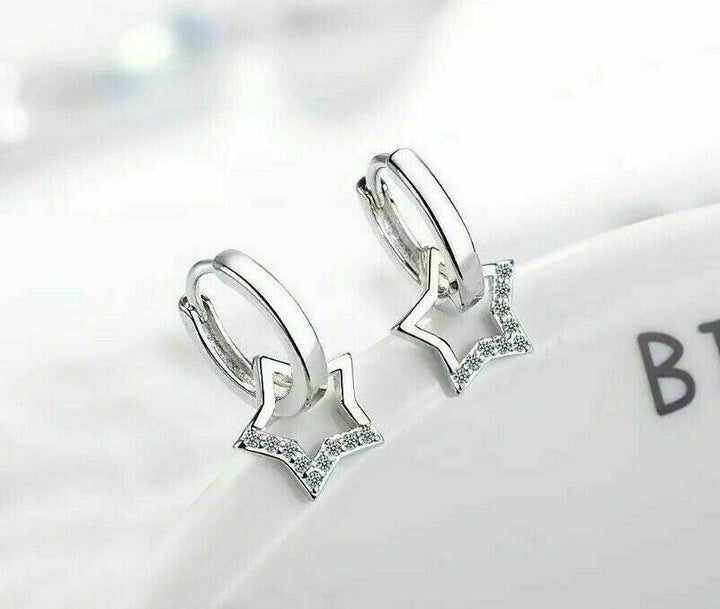 Creole mit Anhänger Stern Sterling Silber 925 Zirkonia Mädchen Ohrringe