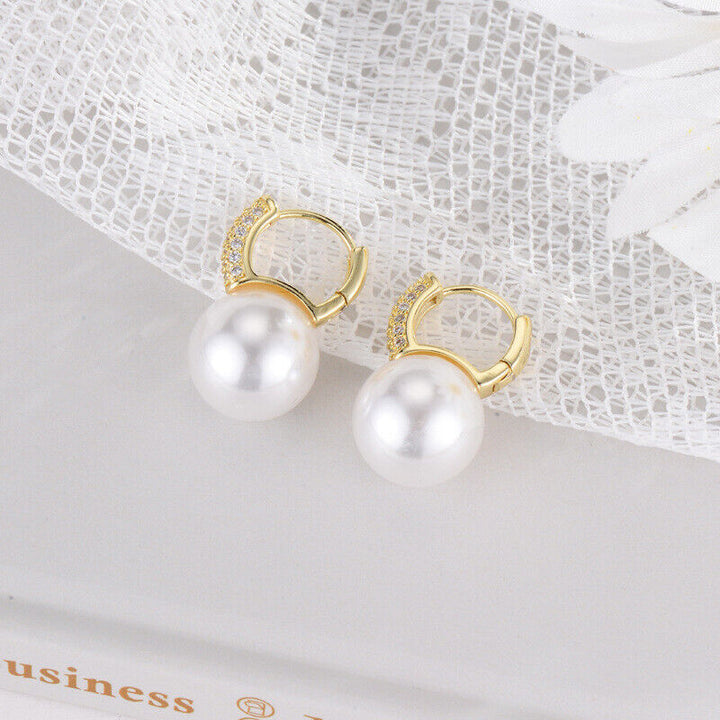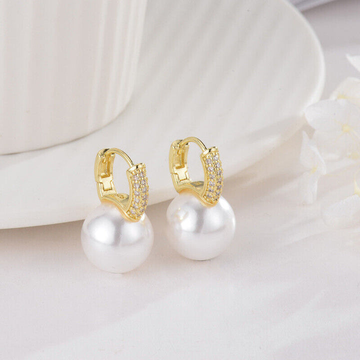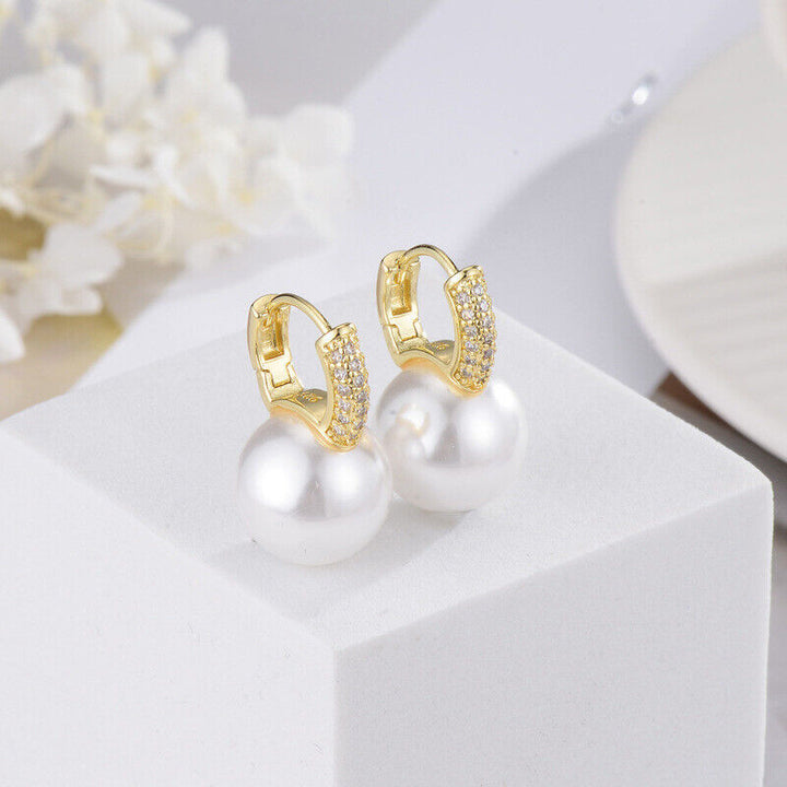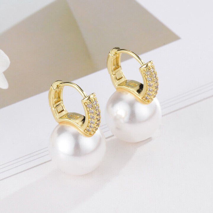 Creole mit großer Perle Sterling Silber 925 Ohrringe