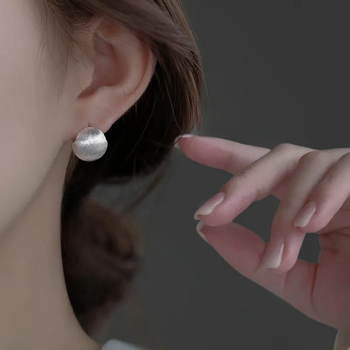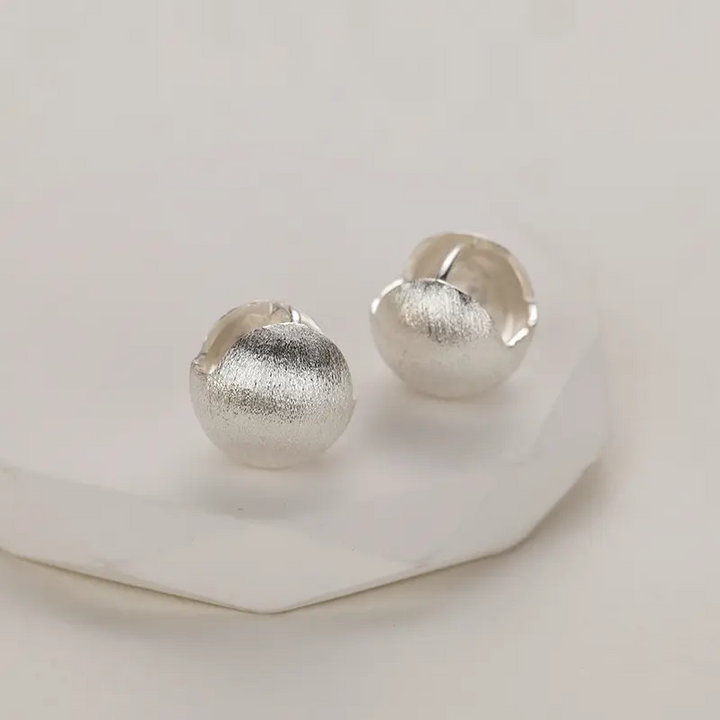 Creole Ohrringe 925er Silber – Gebürstetes Kugel-Design Ohrstecker