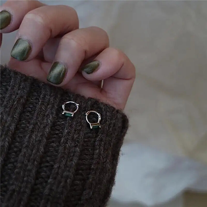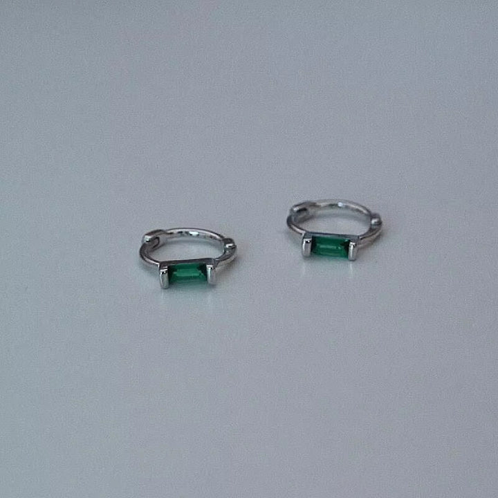 Elegante Creolen aus hochwertigem 925 Sterling Silber, veredelt mit einem rechteckigen grünen Zirkonia-Stein. Das schlichte und moderne Design macht diese Ohrringe zu einem stilvollen Begleiter für jeden Anlass – ob Alltag oder besondere Momente.