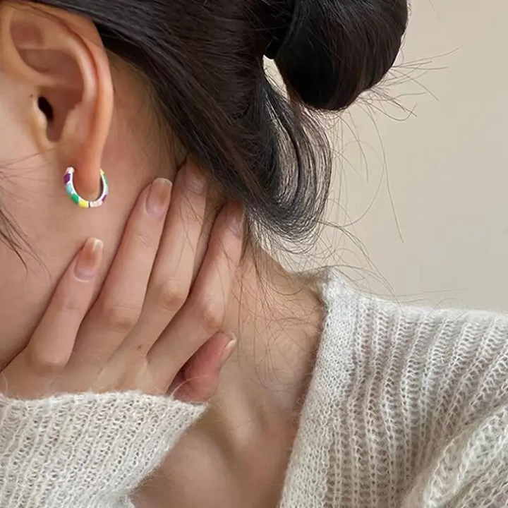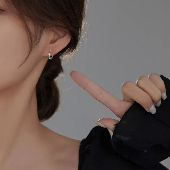 Creole Rund Sterling Silber 925 Multi Farben Damen Ohrringe