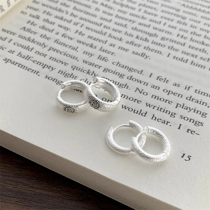 Creole Rund-Lachen Sterling Silber 925 Damen Herren Ohrringe