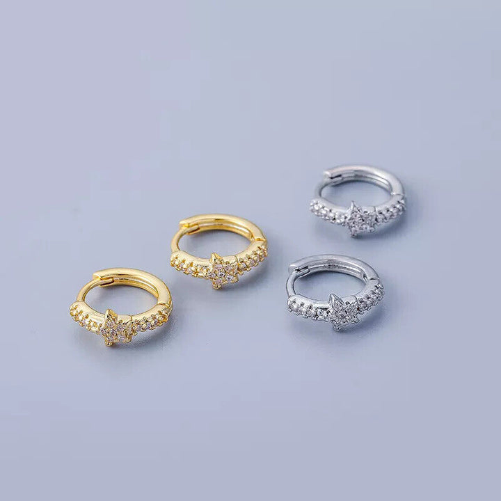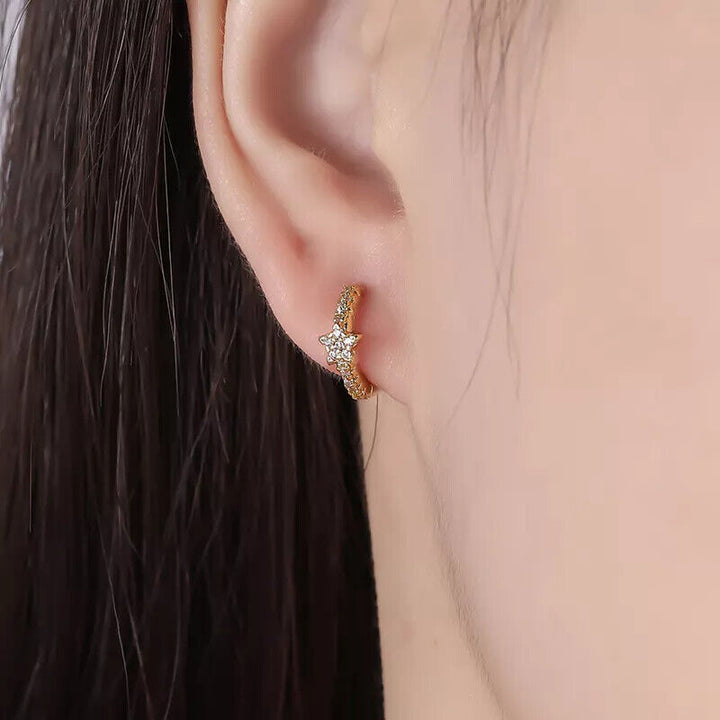 Creole Stern Sterling Silber 925 Damen Ohrringe Zirkonia