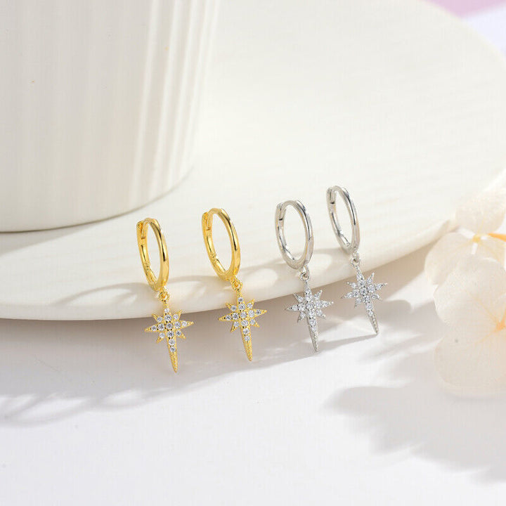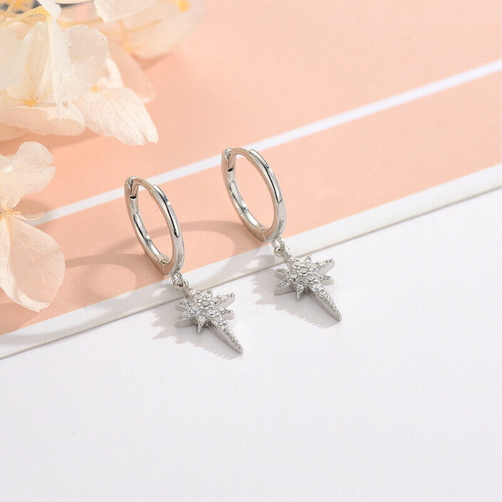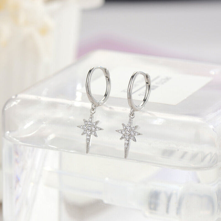 Creole Stern Sterling Silber 925 Zirkonia Damen Mädchen Ohrringe