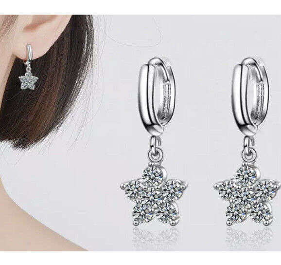 Creolen-Anhänger Blumen mit Zirkonia Sterlingsilber 925 Damen Mädchen Ohrrin