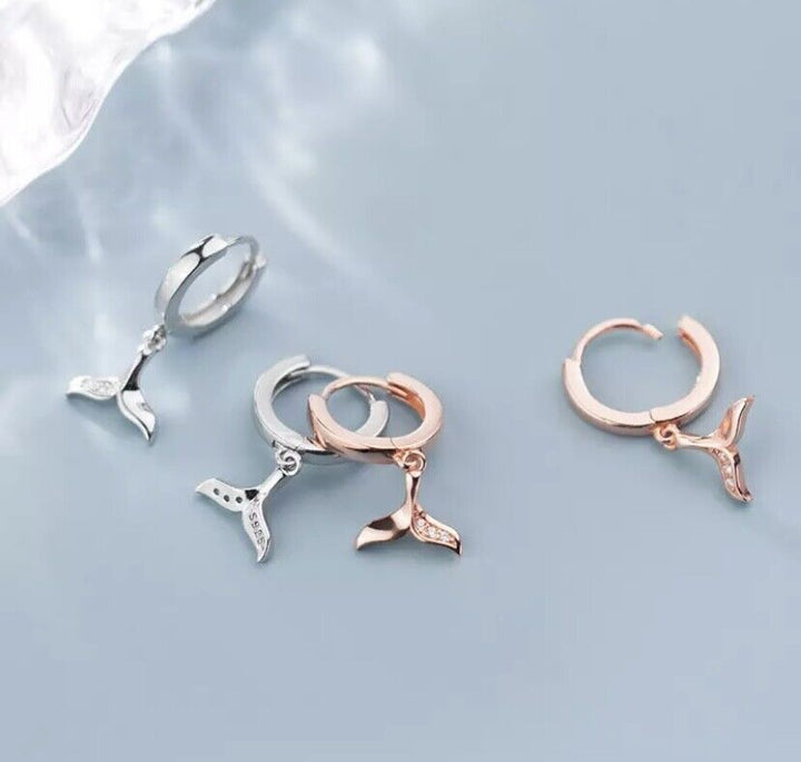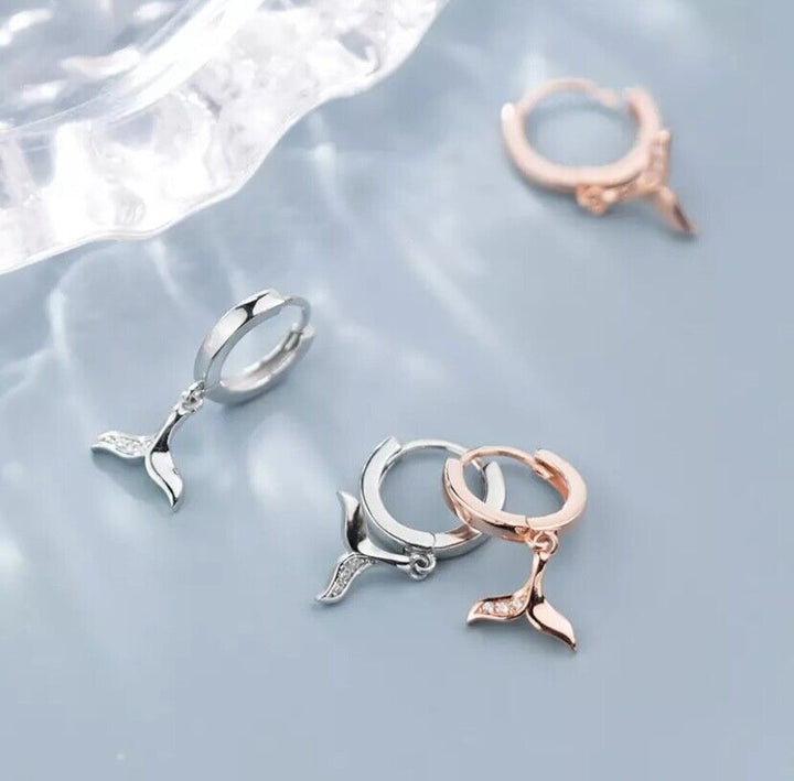 Creolen Anhänger Mermaid Schwanzfloss Silber 925 Ohrringe Damen