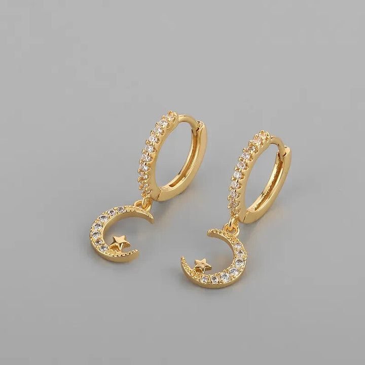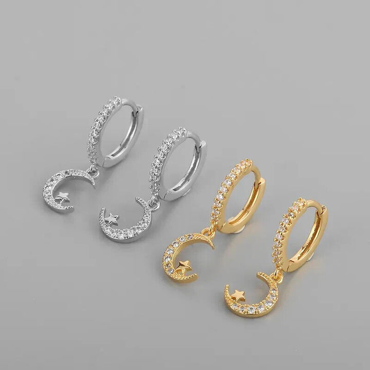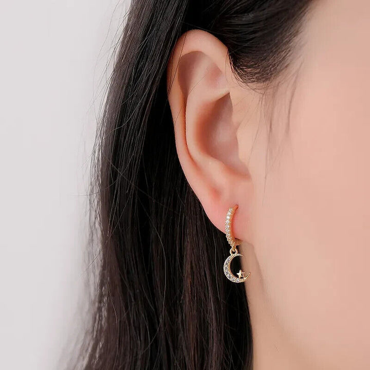 Creolen - Anhänger Mond Stern Sterling Silber 925 Damen Ohrringe Ohrhänger