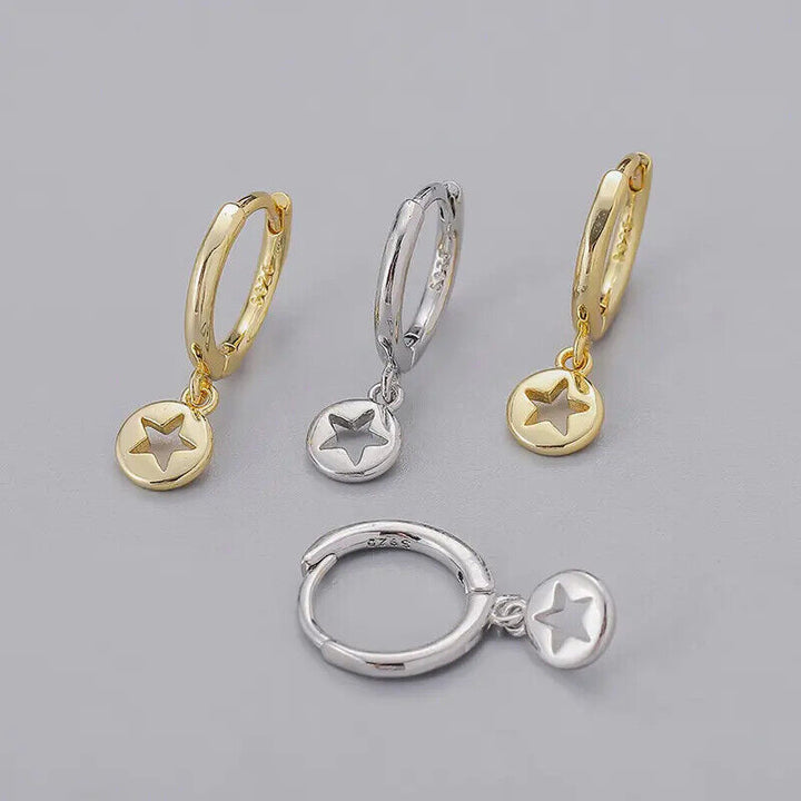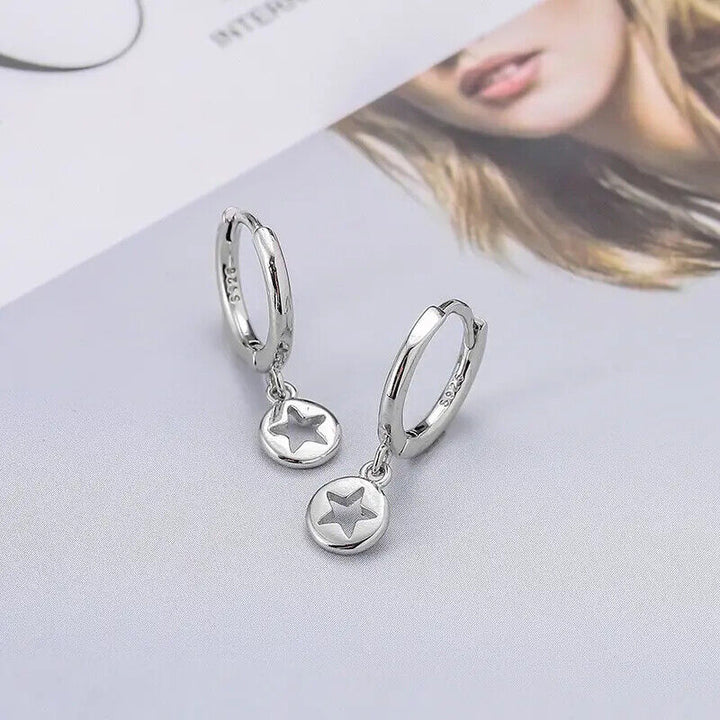 Creolen Anhänger Offener Stern Sterling Silber 925 Damen Ohrringe