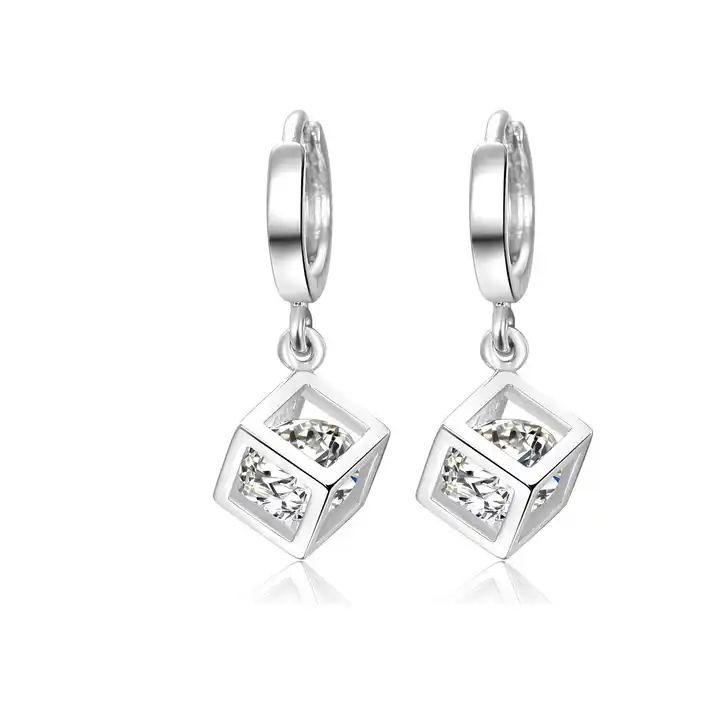 Creolen- Anhänger Quadratische Silber 925 Zirkonia Ohrringe Quadrat