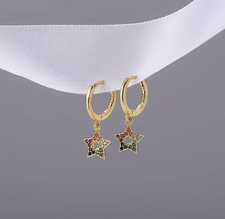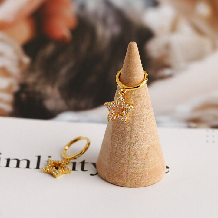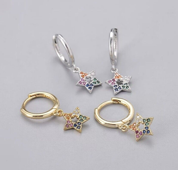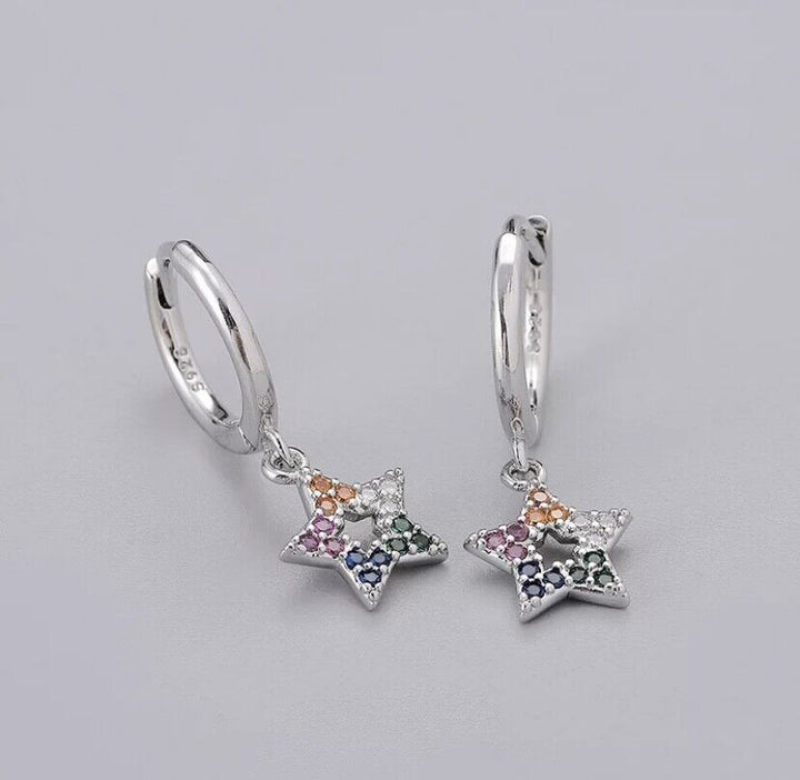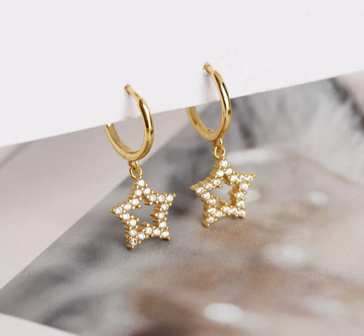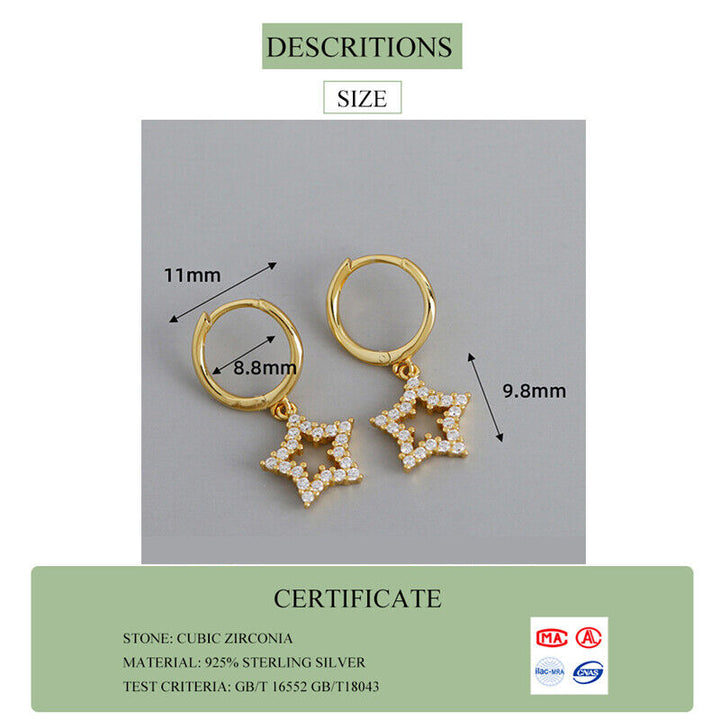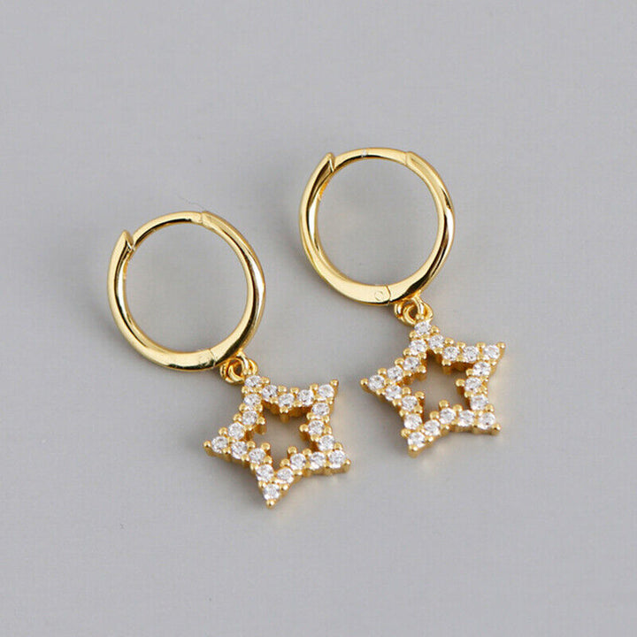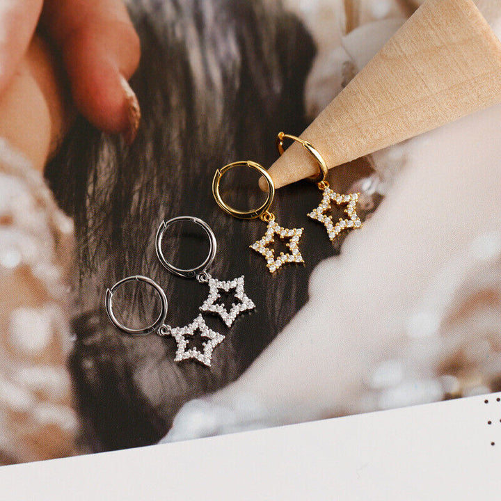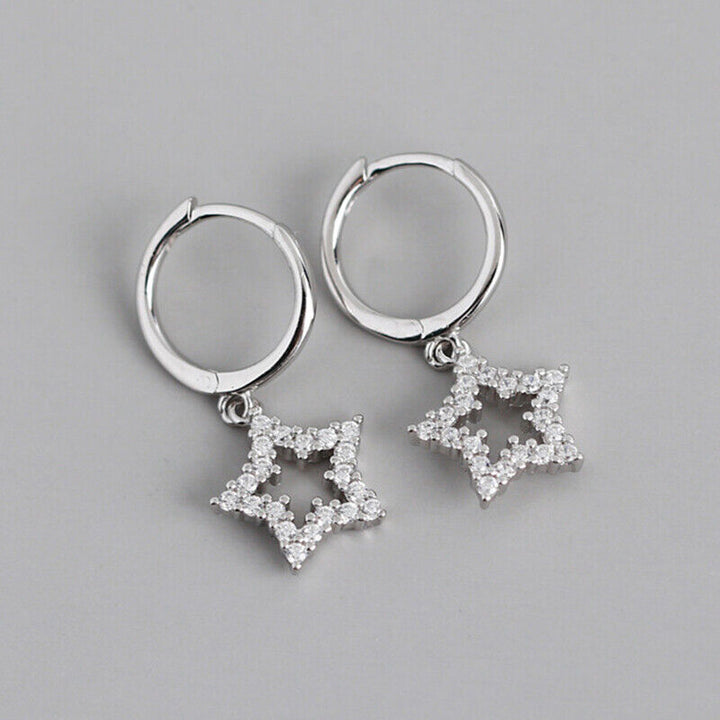 Creolen Anhänger Stern Silber 925 Zirkonia Damen Ohrringe