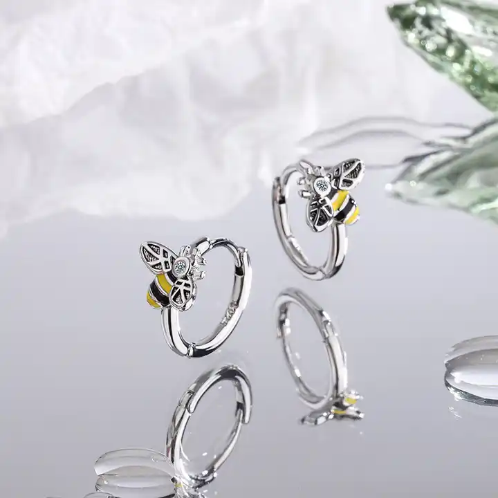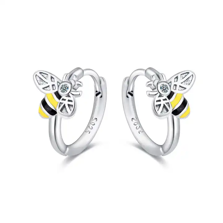 Creolen Biene echt Sterling Silber 925 Zirkonia Damen Ohrringe