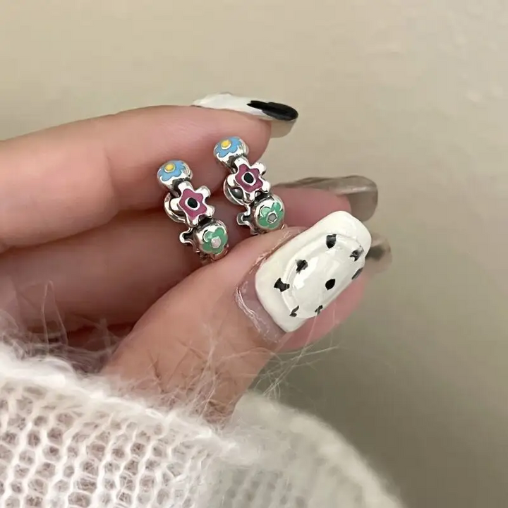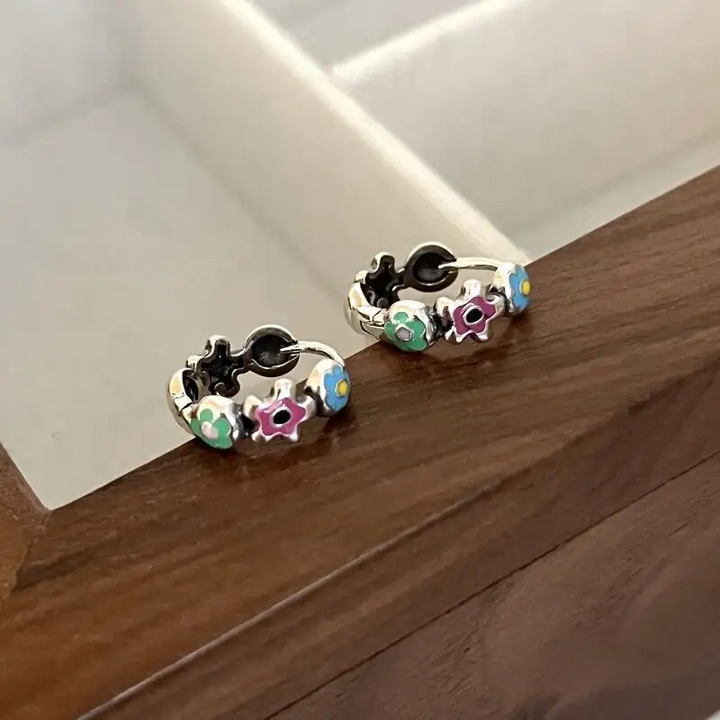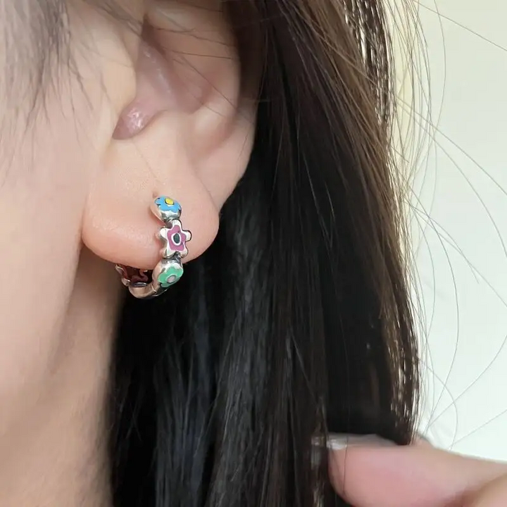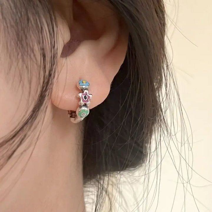 Creolen Blüte Mehrfarbig Sterling Silber 925 Ohrringe Blumen Mädchen
