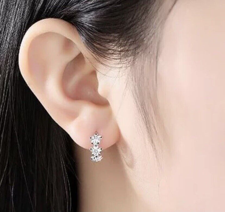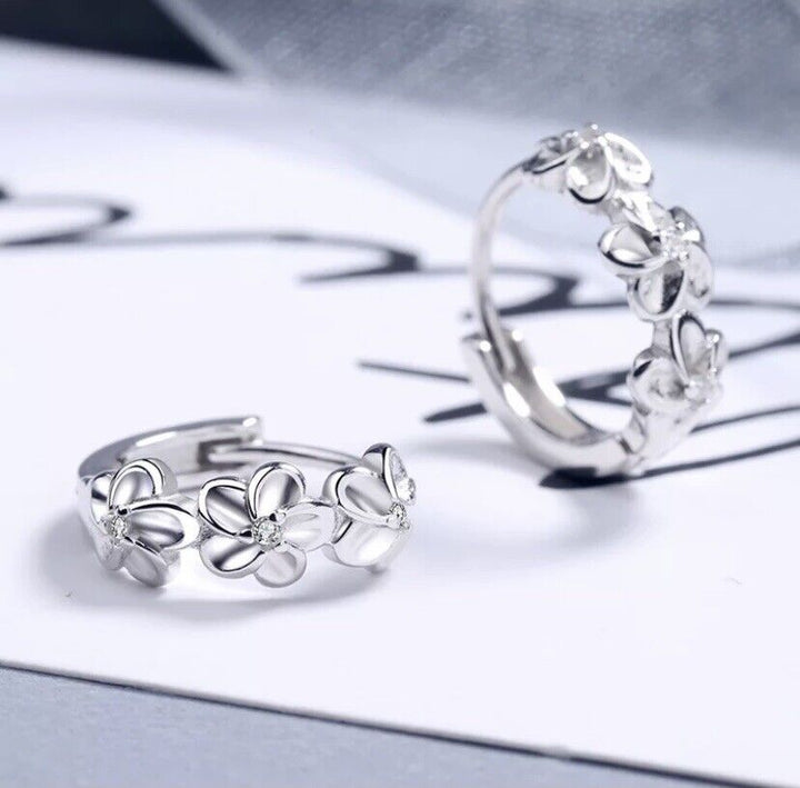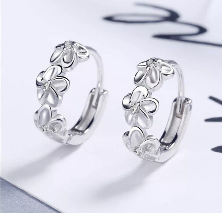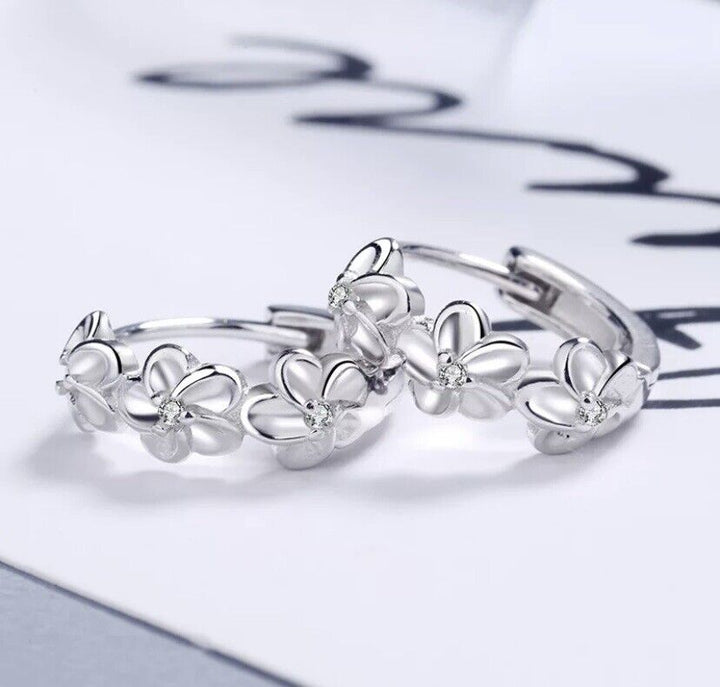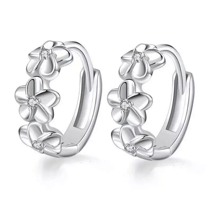 Creolen Drei Blumen Zirkonia Damen Mädchen Ohrringe