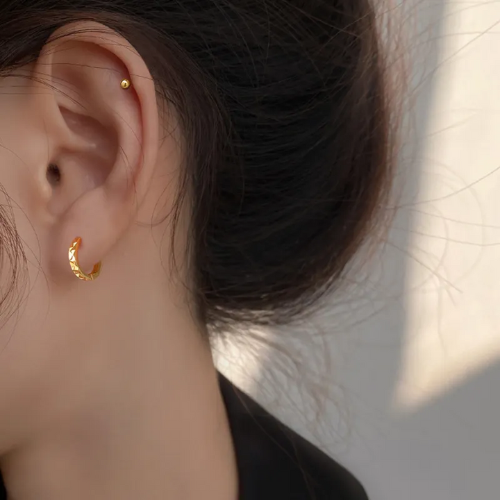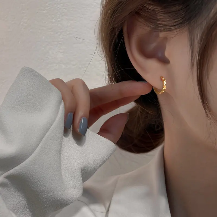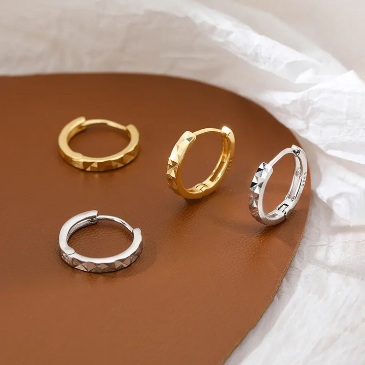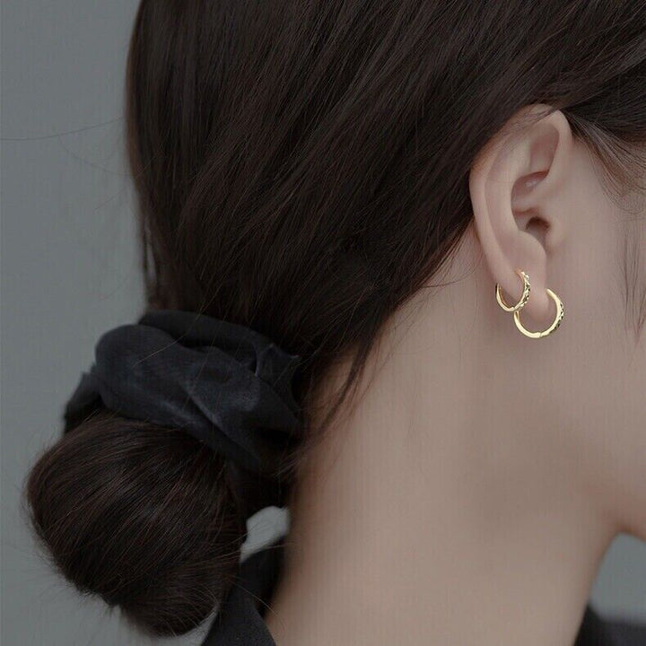 Creolen Gemeißelt Sterling Silber 925 Vergoldet Damen Ohrringe