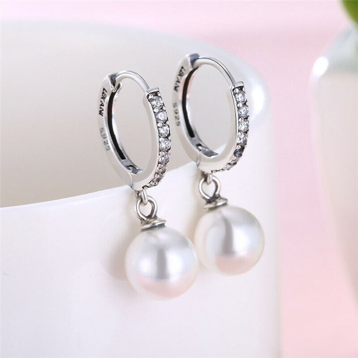 Creolen Klapp Silber 925 Süßwasserperle Imitat Damen Schmuck