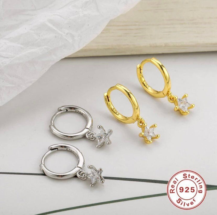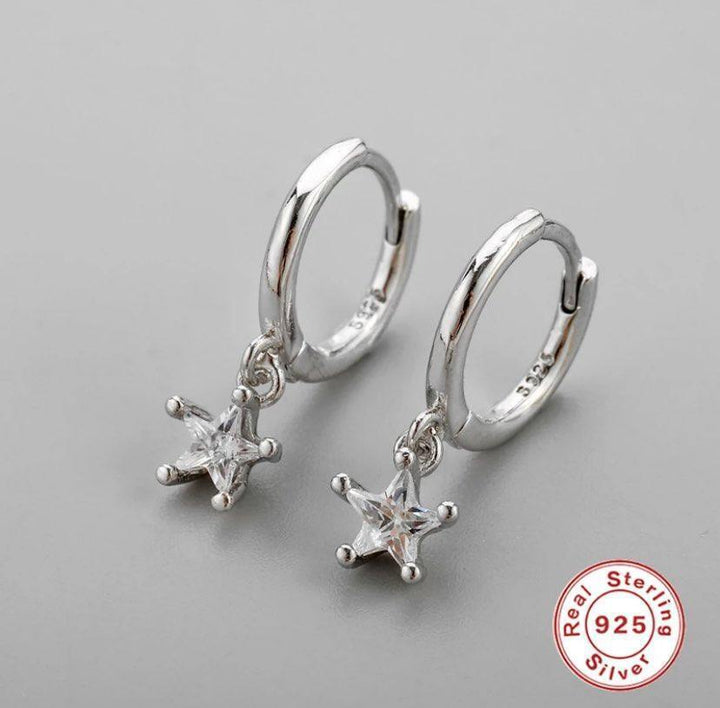 Creolen Klapp Sterlingsilber 925 Zirkonia Anhänger Stern Damen Ohrringe
